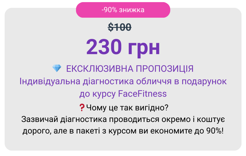 🟣 Діагностика обличчя в подарунок → Індивідуальний аналіз твого обличчя та рекомендації щодо зон, які потребують уваги.